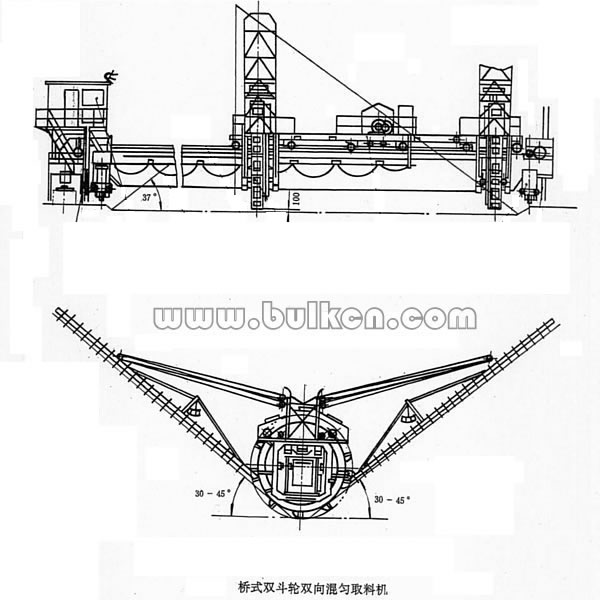 您现在的位置:首页->散料机械->常用散料机械示意图—>双斗轮桥式混匀取料机示意图 2008-11-30