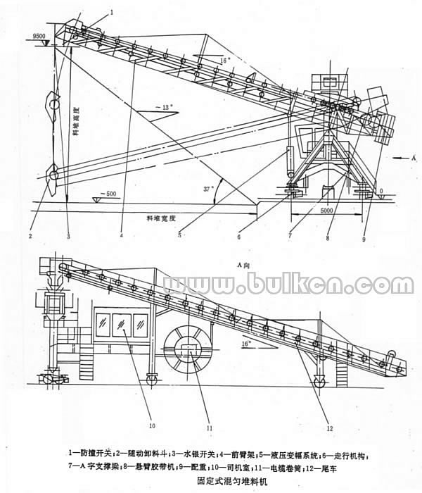 您现在的位置:首页->散料机械->常用散料机械示意图—>不回转堆料机示意图 2008-11-30
