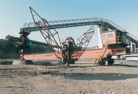 堆取料机是大连重工起重集团有限公司主导产品之一,是一种连续、高效、低耗的散料装卸机械,广泛应用于冶金、矿山、电厂、港口等大型原料场,堆取煤炭、矿石等散装物料。1966年自主设计制造了国内第一台斗轮堆取料机;1969年,自主设计制造了国内第一台当时国内最先进的堆料能力800t/h、取料能力1200t/h的大型联合堆取料机;1981年,自主设计制造了国内第一台DQL1250/1250?30型堆取料机;1985年,自主设计制造了国内第一台圆形料场摇臂斗轮堆取料机;1997年,自主设计制造了国内第一台回转半径为55米,取料量为4500t/h