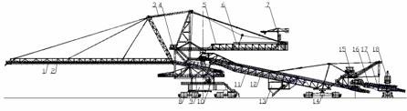 履带支撑车 15. 副司机室 16. 末段受料臂 17. 末段受料皮带机 18.卸料车