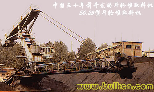 30.25 型斗轮堆取料机 :国内设计制造,七十年代初期投入使用的斗轮堆取料机。